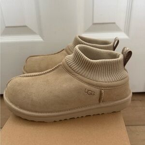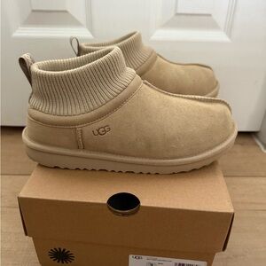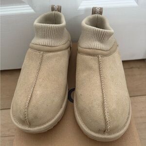 Cozy UGG slip-on boots in beige. Ideal for everyday comfort.