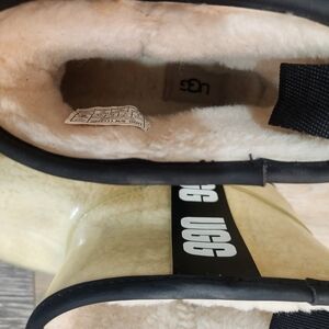 UGG Beige Waterproof Ankle Boots Size 9. Stylish UGG ankle boots in beige. Features a cozy interior and durable sole. Great condition. Very unique cool clear look. Great for outdoor activities. I'm a highly rated fast shipper.