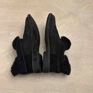 Step into winter with these UGG ankle boots, designed in sleek black with a cozy fur lining. The stylish pom-pom detail adds a playful touch, while the slip-on design ensures easy wear. Perfect for keeping your feet warm and comfortable during chilly days.