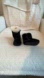 Adorable UGG baby boots in black. Soft cream shearling lining for warmth.