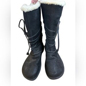 UGG Black Catalina Laced Nubuck Leather Shearling Boots