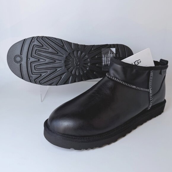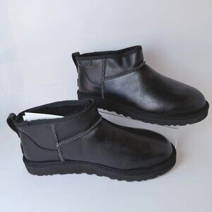 UGG Black Classic Ultra Mini Boots Regen Leather Winter Boots Men Size 10