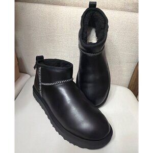 UGG Black Classic Ultra Mini Boots Regen Leather Winter Boots Men Size 8