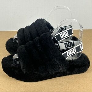 UGG Black Fluffy Slides size 10