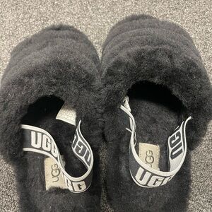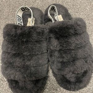UGG Black Fluffy Slippers