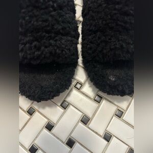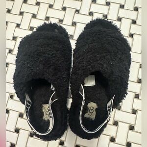 UGG Black Fuzzy Open-Toe Slippers