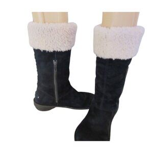 UGG Black Karyn Mid Calf Sheepskin Cuff Suede Leather Boots Size 7 Womens Side Z