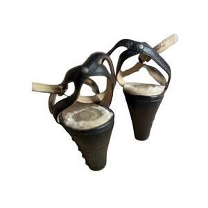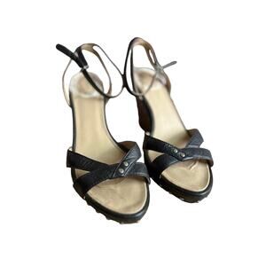 UGG Black Leather Ankle Strap Studded Wedge Heel Summer Sandals Size 8.5