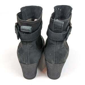 UGG Black Leather Indra Waterproof Wedge Booties Size 7