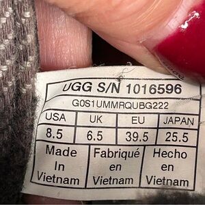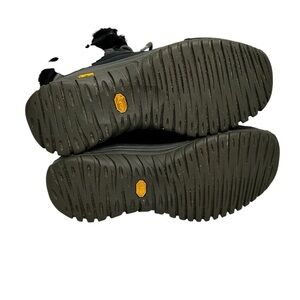 Great condition- there is a small imperfection on left Choutoe see photo. Black shearling needs to be combed out on the top cuff.