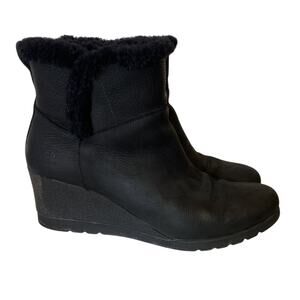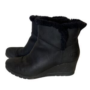 UGG Black Leather Suede Waterproof Wedge Fur Boots Size 10