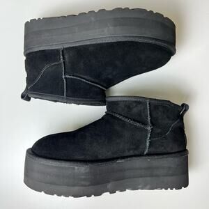 Stylish UGG platform shoes. Sleek black design. Perfect for casual outings. I love these but never wore them!