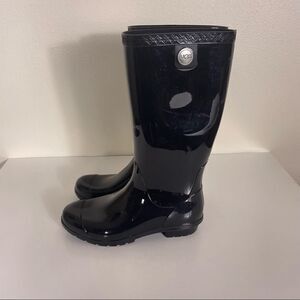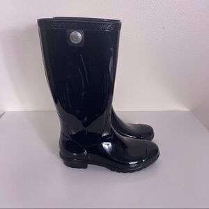 UGG Black Rubber Tall Pull On Rain Boots