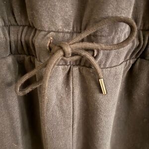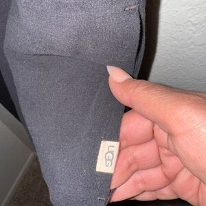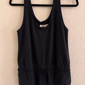 This UGG jumpsuit in solid black features a sleeveless design with wide shoulder straps and a scoop neckline. Crafted for comfort, it offers a relaxed fit and extends to full length, making it a versatile addition to any wardrobe. Size small NWT
