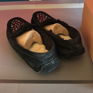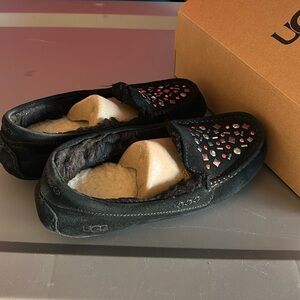 Cozy UGG slippers gently worn. Black with colorful gems. Ideal for warmth and style this coming fall. Size 8. Box included. I’ve recently replaced the fur insole it’s new inside.