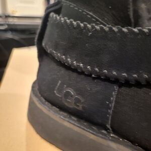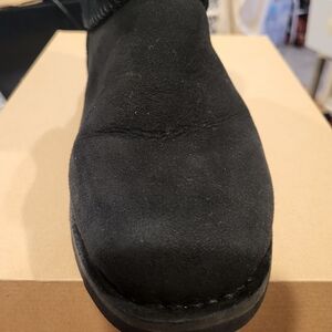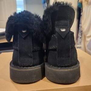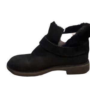 Elegant black suede booties. Soft fur collar. Ideal for chilly days.