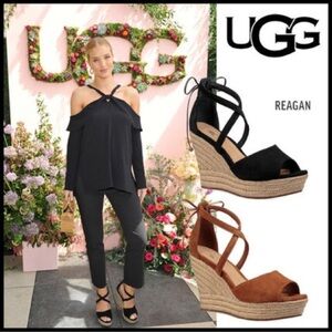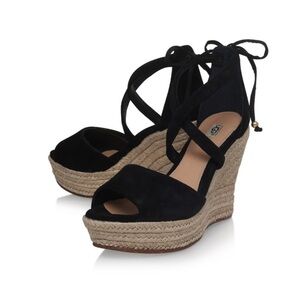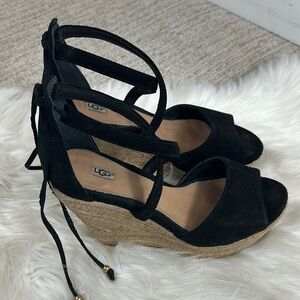 UGG Black Suede Espadrille Regan Wedge Sandals 8.5