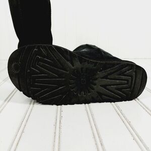 UGG Black Suede Leather Sheepskin Pull On Mid Calf Classic Boots E943