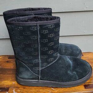 Classic Suede and Shearling UGGs with the logo print in the suede. They are in very good used condition. Moderate wear