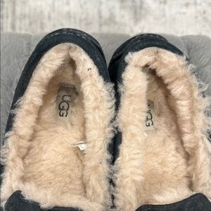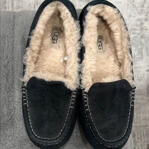 Luxurious black suede slippers. Soft cream lining for ultimate comfort.