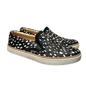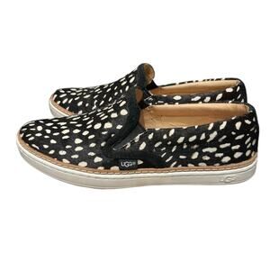 UGG Black White Print Cow Hair Soleda Exotic Trainer Slip On Sneaker Womens 6