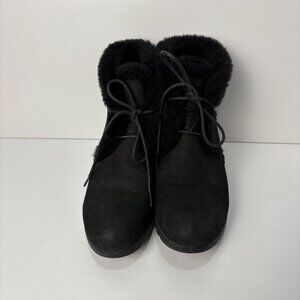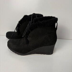 UGG Black Womens Jeovana Suede Waterproof Shearling Ankle Boots size 10 Wedge