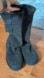 Chic black knit boots with gold accents. Features a cozy design.Ugg sock boots , used in hood shape.