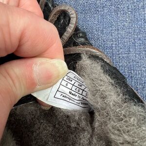 Women’s size 6. UGG moccasin slippers in black and grey. Soft, plush lining for comfort. These are Brand New. I bought these years ago and never wore them.