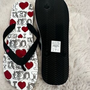 UGG flip flops with bold heart pattern. Comfortable and stylish. Offers welcome! Bundle for additional savings!
