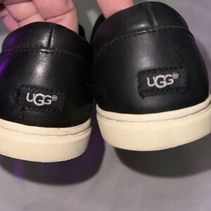UGG Black leather slip on sneakers with comfort panels sz 8