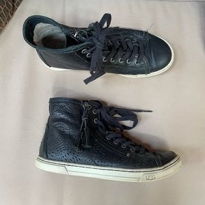 Swingy tassels detail a cool, pebbled-leather sneaker cushioned with an EVA insole and finished with a bit of soft UGGpure lining placed to cradle your heel. UGGpure is a moisture-wicking textile made entirely from wool but engineered to feel and wear like genuine shearling.