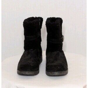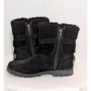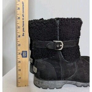 UGG Blayre II Boots Black Sz 8 Shearling Sheepskin Buckle Moto Warm Comfort EUC