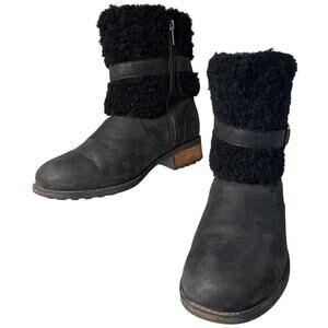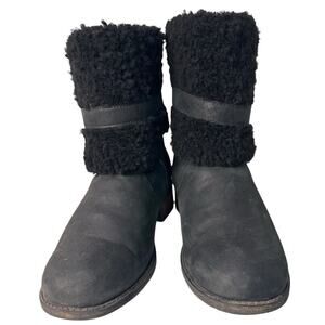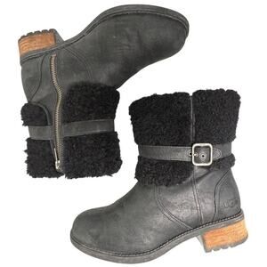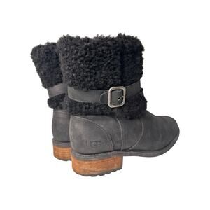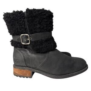 UGG Blayre II Boots Womens 8 Black Nubuck Shearling Zip Fur Trim Equestrian Fall