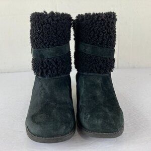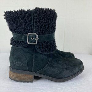 UGG Blayre II Women 8.5 Sherpa Black Suede Lined Side Zip Buckle Boot Mid Calf