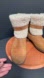 Cozy tan boots with shearling lining. Features stylish buckle detail. Ideal for winter wear. GUC with lots more life.
