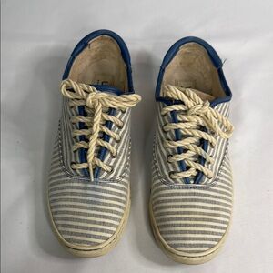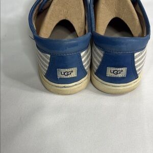 Experience the perfect blend of comfort and style with UGG's blue and cream sneakers. These low-top sneakers feature a nautical-inspired design, ideal for casual outings. Crafted with a durable rubber sole, they promise both durability and a laid-back aesthetic.