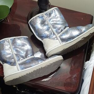 Chic UGG boots with sequin star design. Features blue and gray colors.