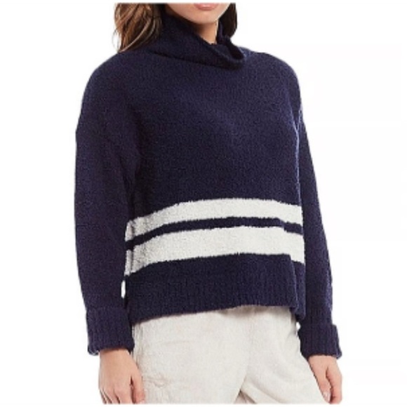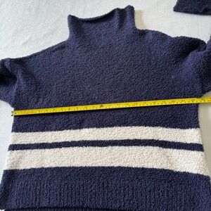 This is a super soft UGG blue with white stripes soft plush mock turtleneck relaxed fit sweater in excellent condition.