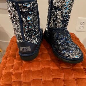 UGG Blue/Silver Sequins Boots US/6 EU/37