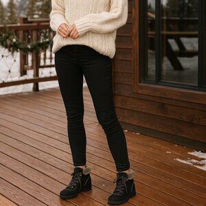 Leather upper/textile faux fur trim and lining/synthetic sole