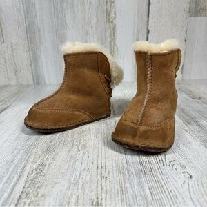 UGG Boo Bootie Baby Boots Chestnut Brown Shearling Cuff Lace