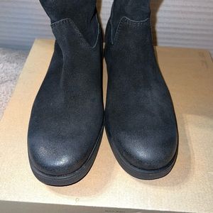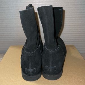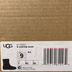 UGG Josefene Suede Short Boots, NWT/Box, Size 9, Color-Black suede. A slimmer shaft and low-profile sole streamline the look of a classic UGG boot in velvety suede with a breathable lining mainly sourced from recycled materials.
