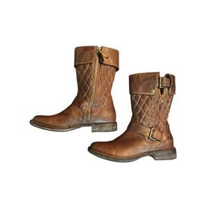 UGG Boot Brown Leather Quilted Mid High Conner Fawn Australia side zip sizs 9 in EUC - recently cleaned and conditioned. Low flat heel and a real leather upper, adjustable buckled strap, comfortable cushioned insole. See pics