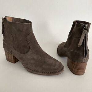 UGG Bootie Women 6M Brown Suede Short Ankle Boots Stacked Heel