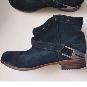 UGG Booties Ankle Boots Leather Suede Black Sz 8 Austin Rustic Moto