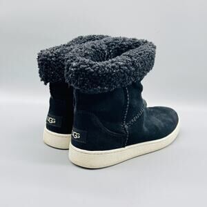 UGG Boots Womens 8.5 Black Suede Sherpa Cuff Ankle Warm Winter Sneaker Bootie