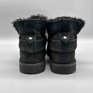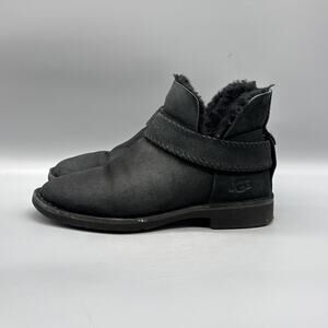 UGG Boots Womens Size 7.5 Black Suede Shearling Lined Ankle Booties Strap Winter