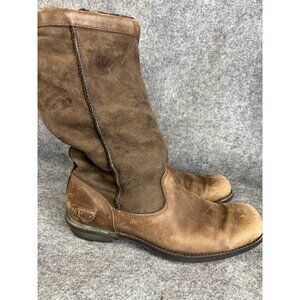 UGG Boots Womens Size 9 Brown Leather Suede Mid Calf Pull On Shearling SN 5594
