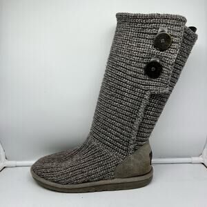 UGG Boots Youth 6 Cardy Sweater Knit Tall 5649 Gray Button
