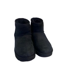UGG Boots Womens 9 Classic Mini II Snow Black Pull On Suede Sheepskin Lined